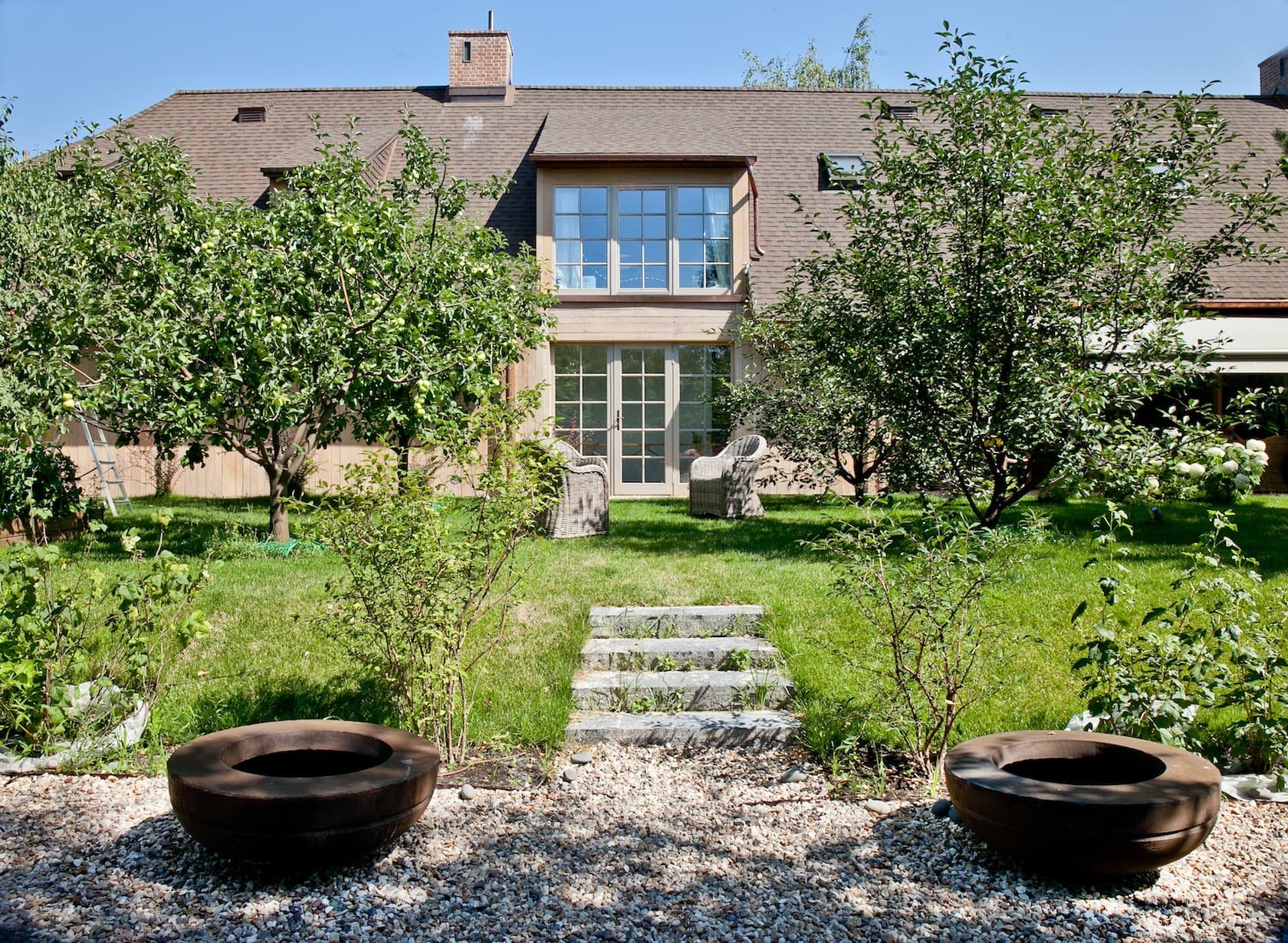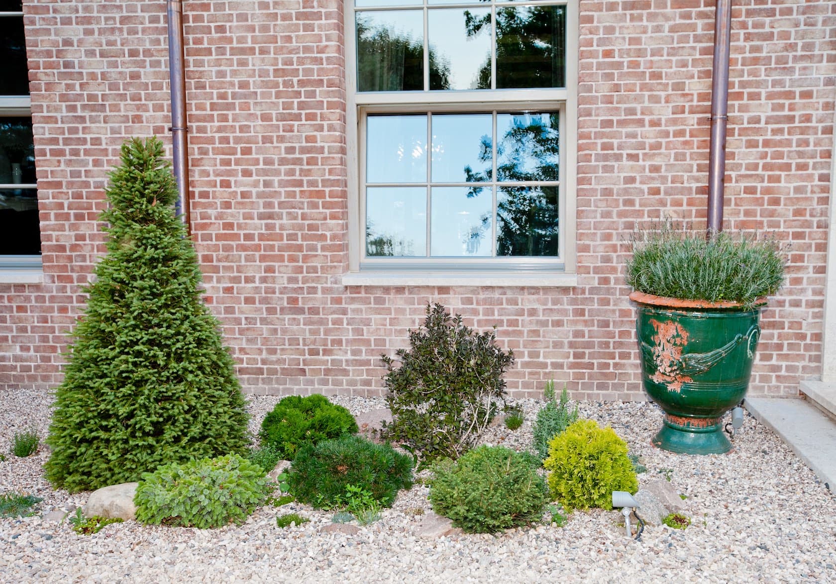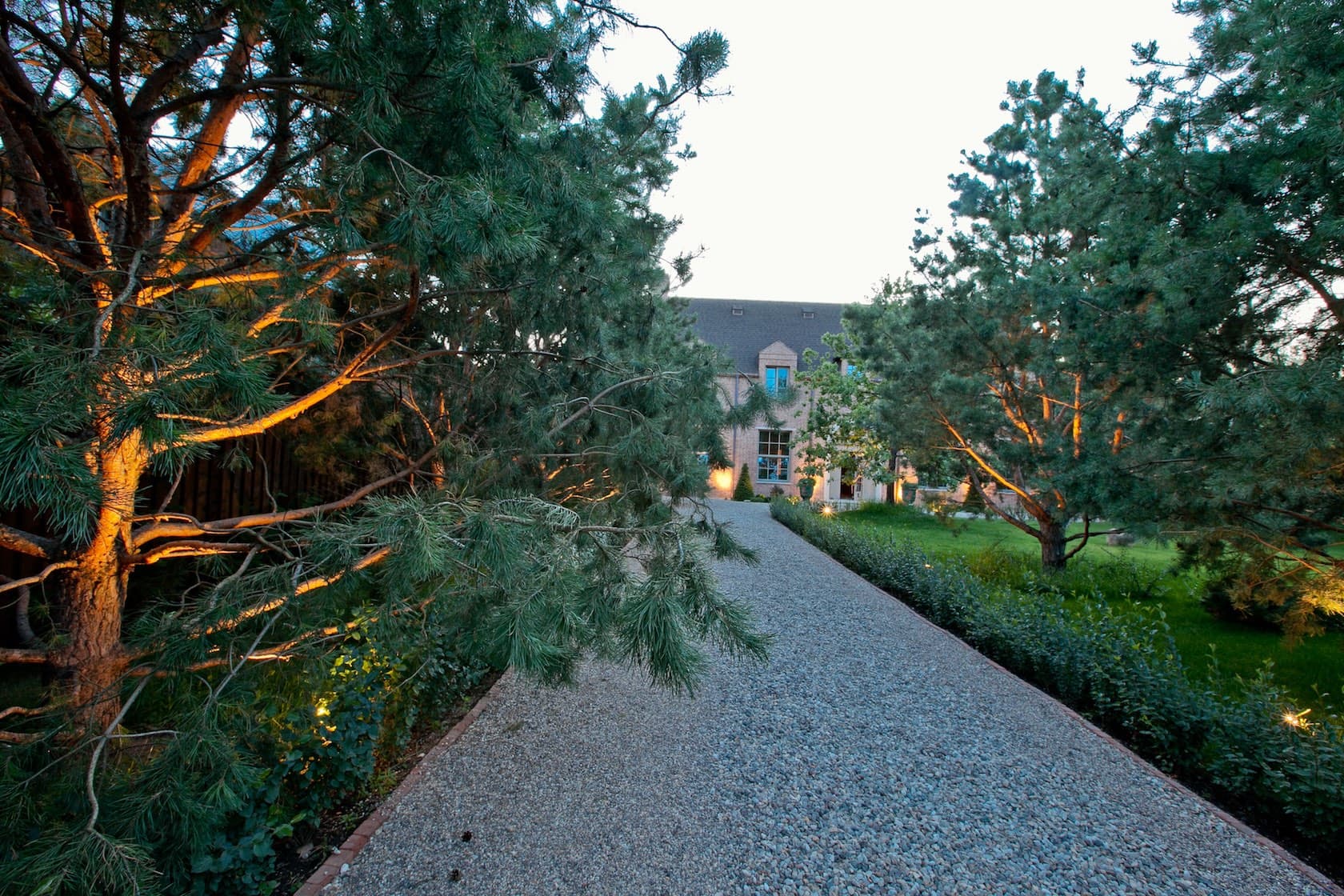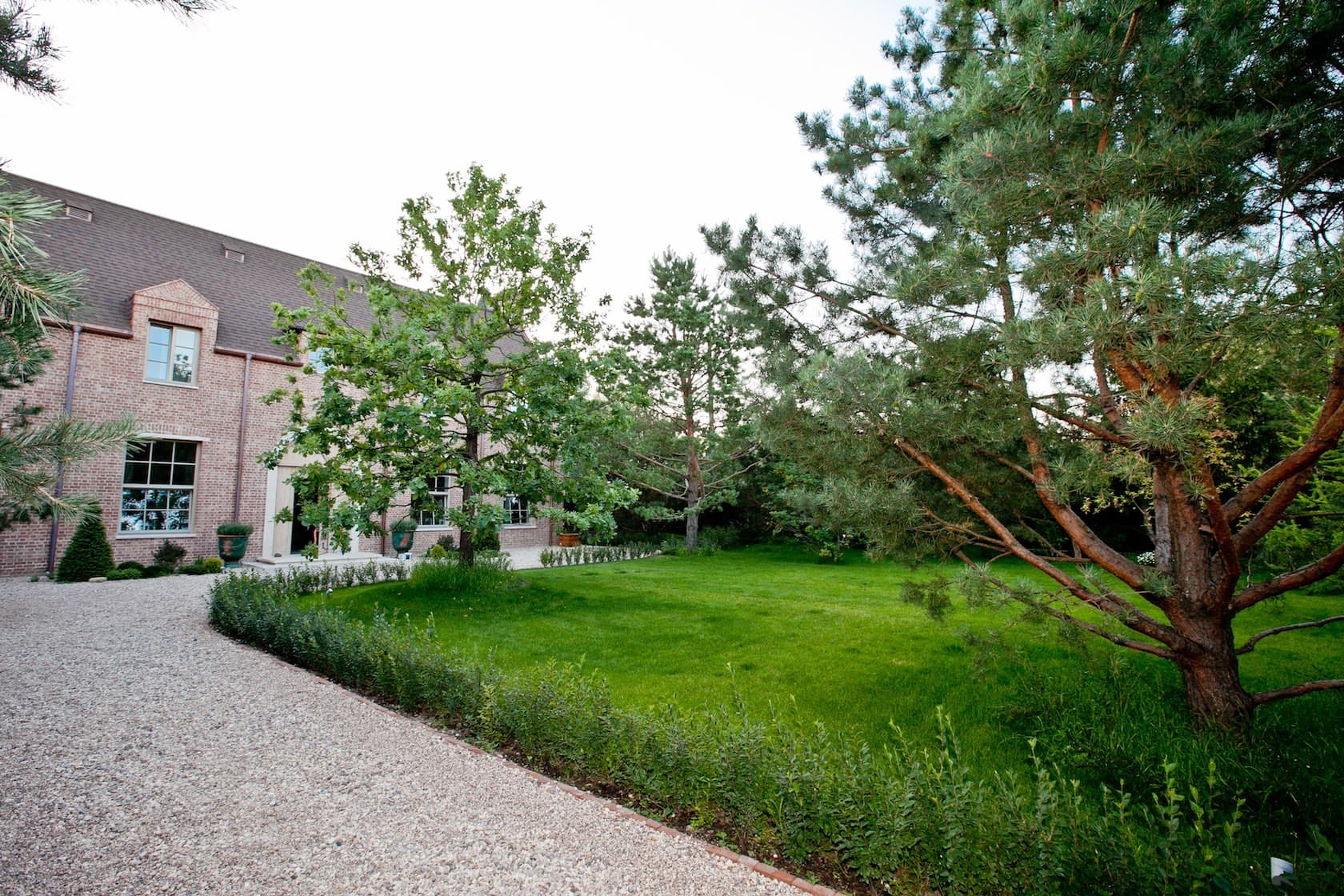 Работы по частичному обновлению грунта, прокладка дренажной системы, установка системы автоматического полива, создание дорожно-тропиночной системы – гравийные дорожки, посадка крупномерных деревьев, кустарников, цветников, укладка рулонного газона, установка освещения.