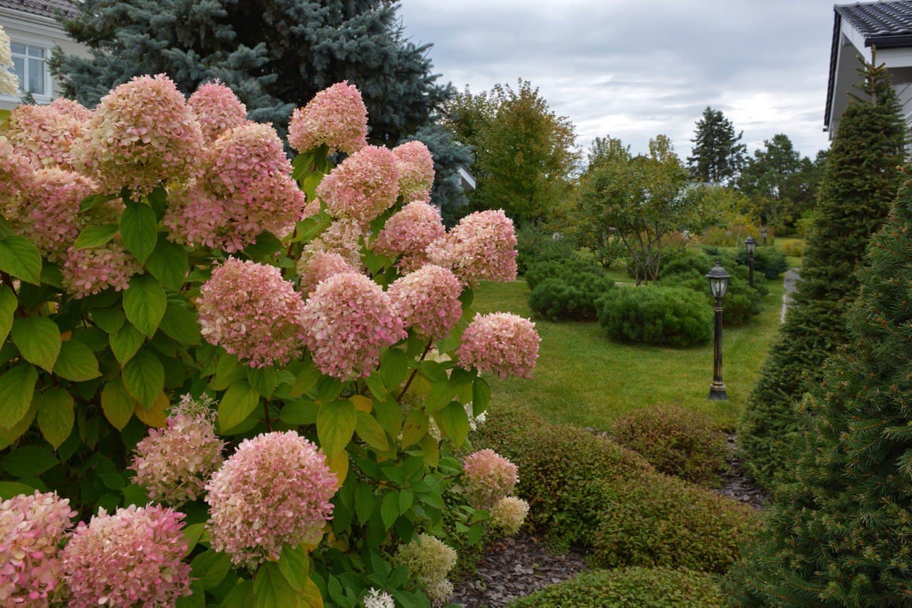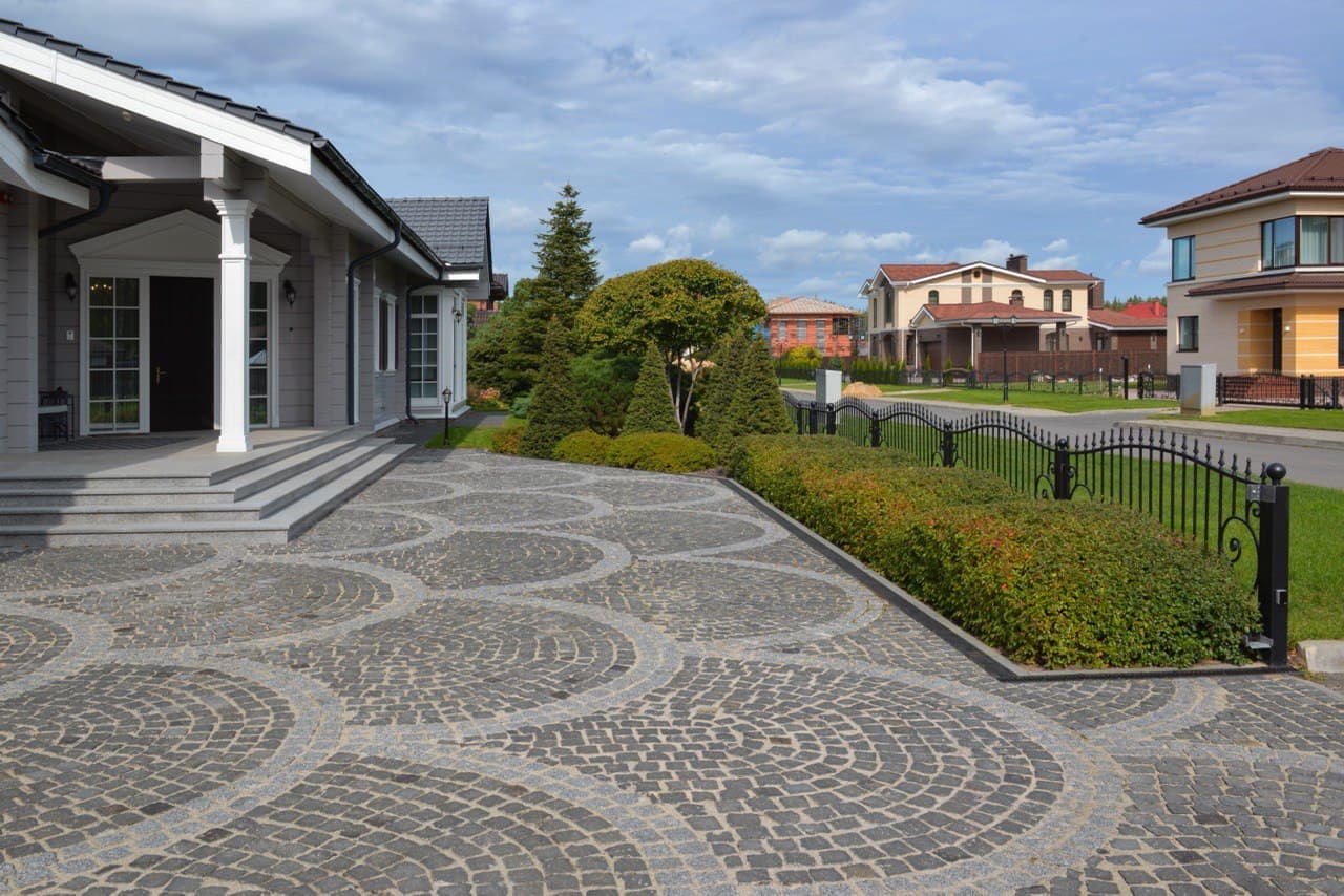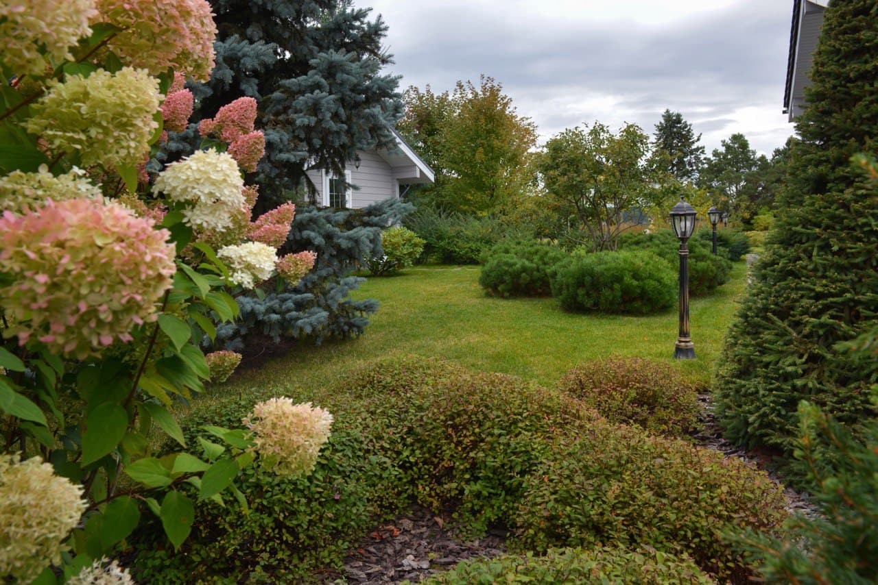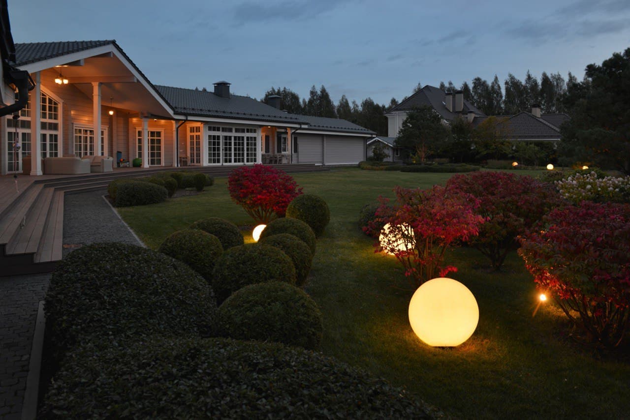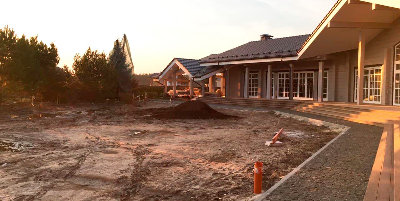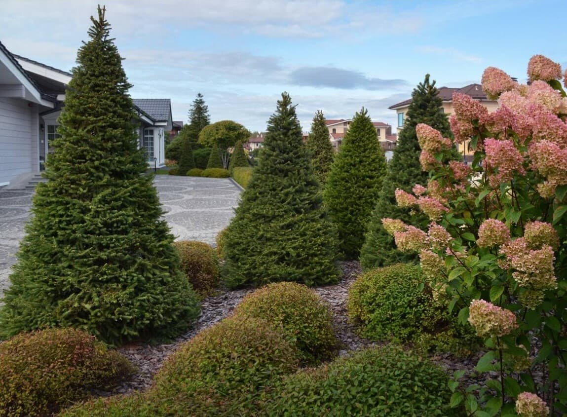 Работы по частичному обновлению грунта, прокладка дренажной системы, установка системы автоматического полива, создание дорожно-тропиночной системы – укладка натурального камня на бетонное основание, посадка крупномерных деревьев, кустарников, цветников, укладка рулонного газона, установка освещения.