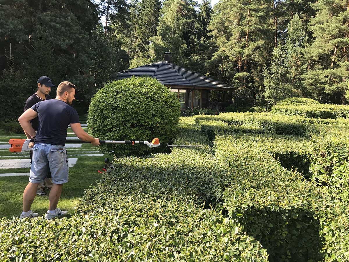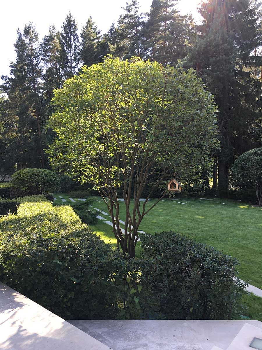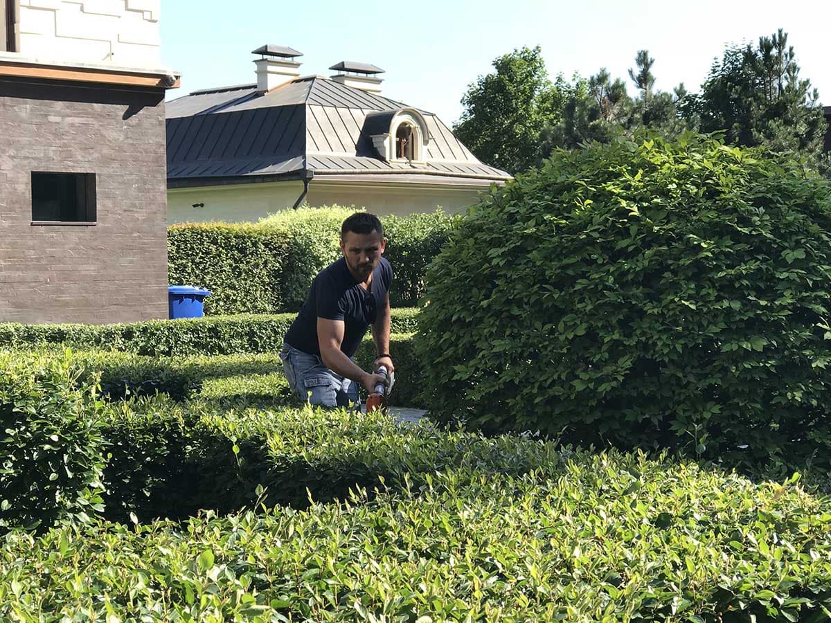 Проводим полный список услуг по уходу. Начиная от обрезки плодовых деревьев и ягодных кустарников, формирующая стрижка декоративных деревьев и кустарников. Подкормка мин. удобрениями и обработка от вредителей и заболеваний всех растений. Уход за розами. Посадку новых растений. Занимаемся регулярным обслуживанием по сей день.