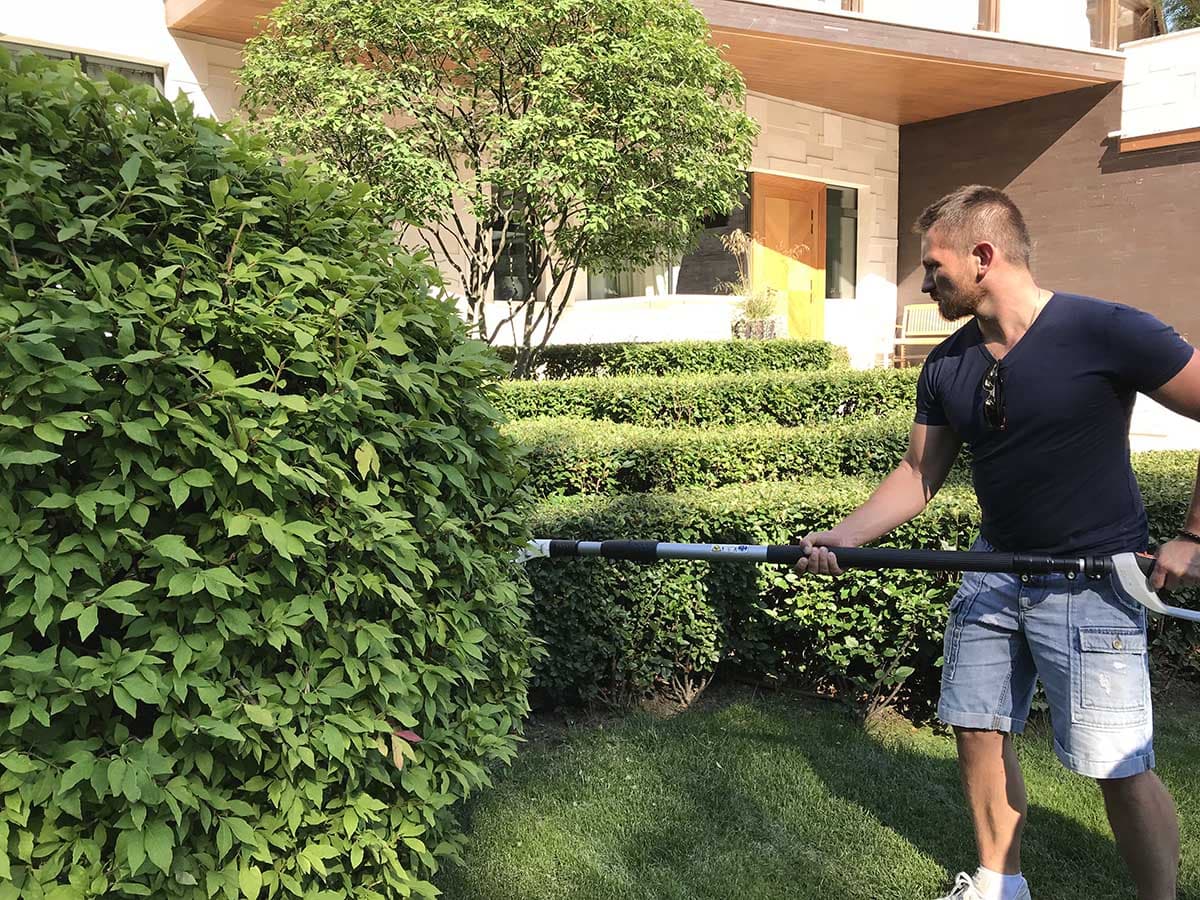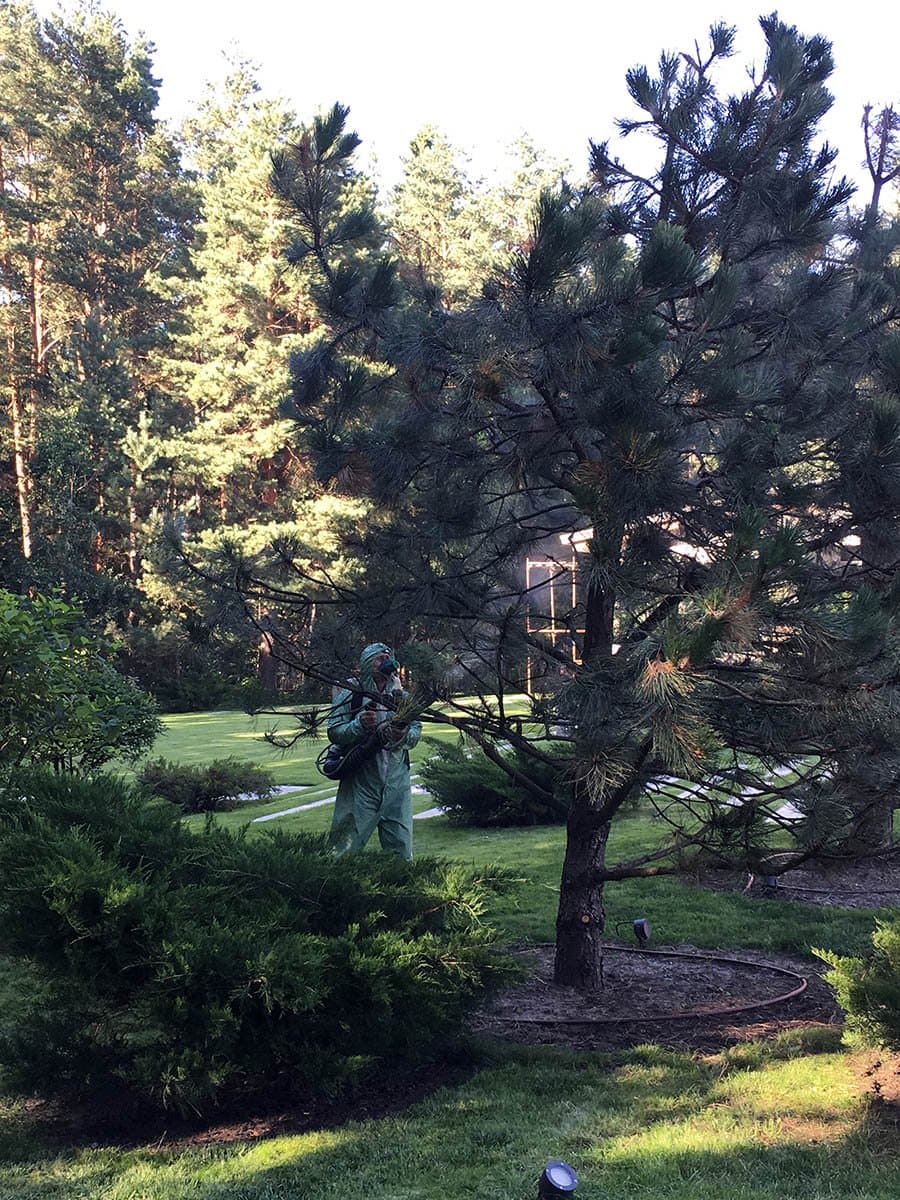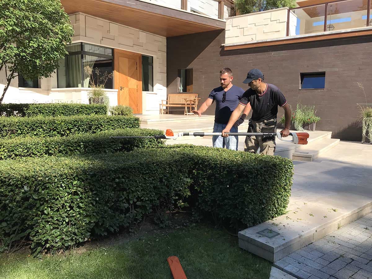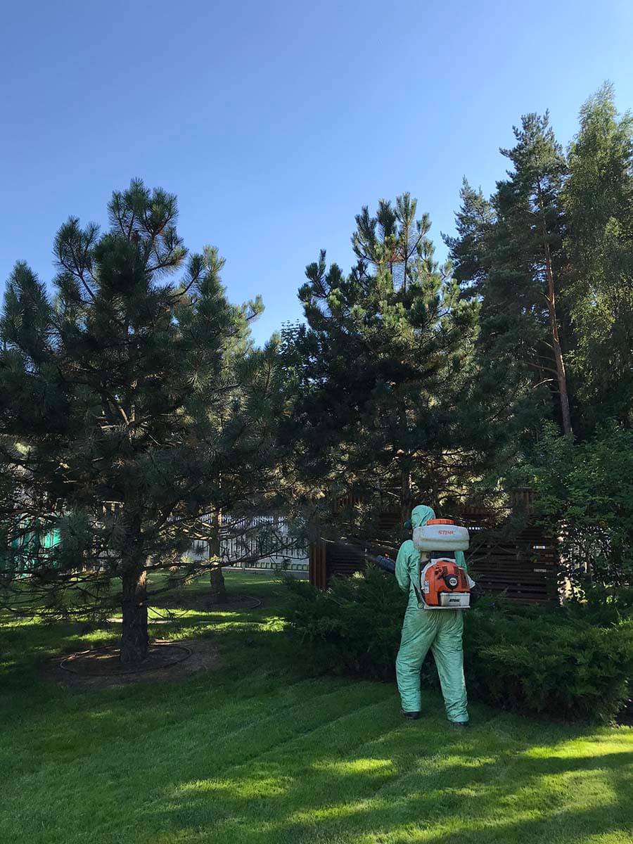 Проводим полный список услуг по уходу. Начиная от обрезки плодовых деревьев и ягодных кустарников, формирующая стрижка декоративных деревьев и кустарников. Подкормка мин. удобрениями и обработка от вредителей и заболеваний всех растений. Уход за розами. Посадку новых растений. Занимаемся регулярным обслуживанием по сей день.