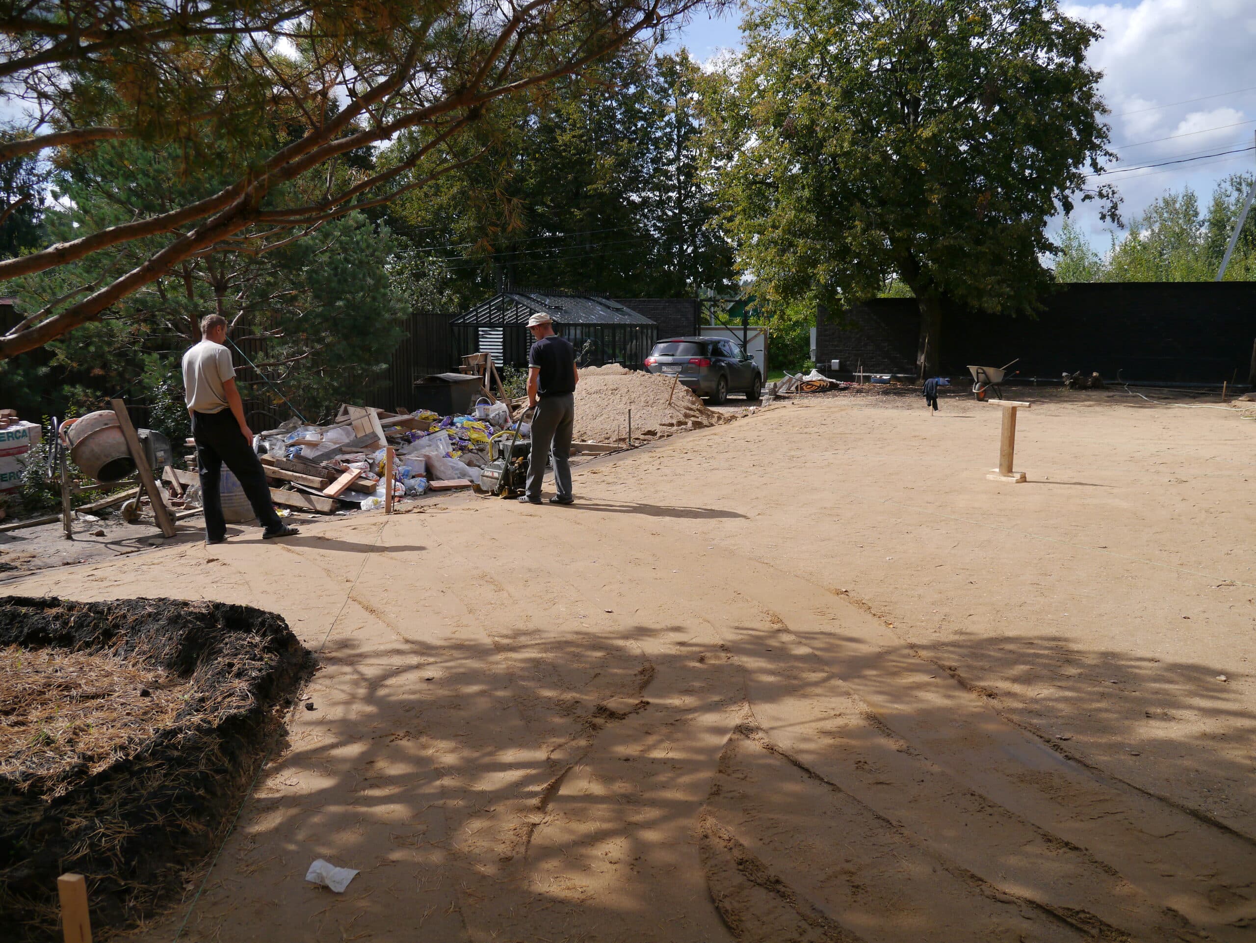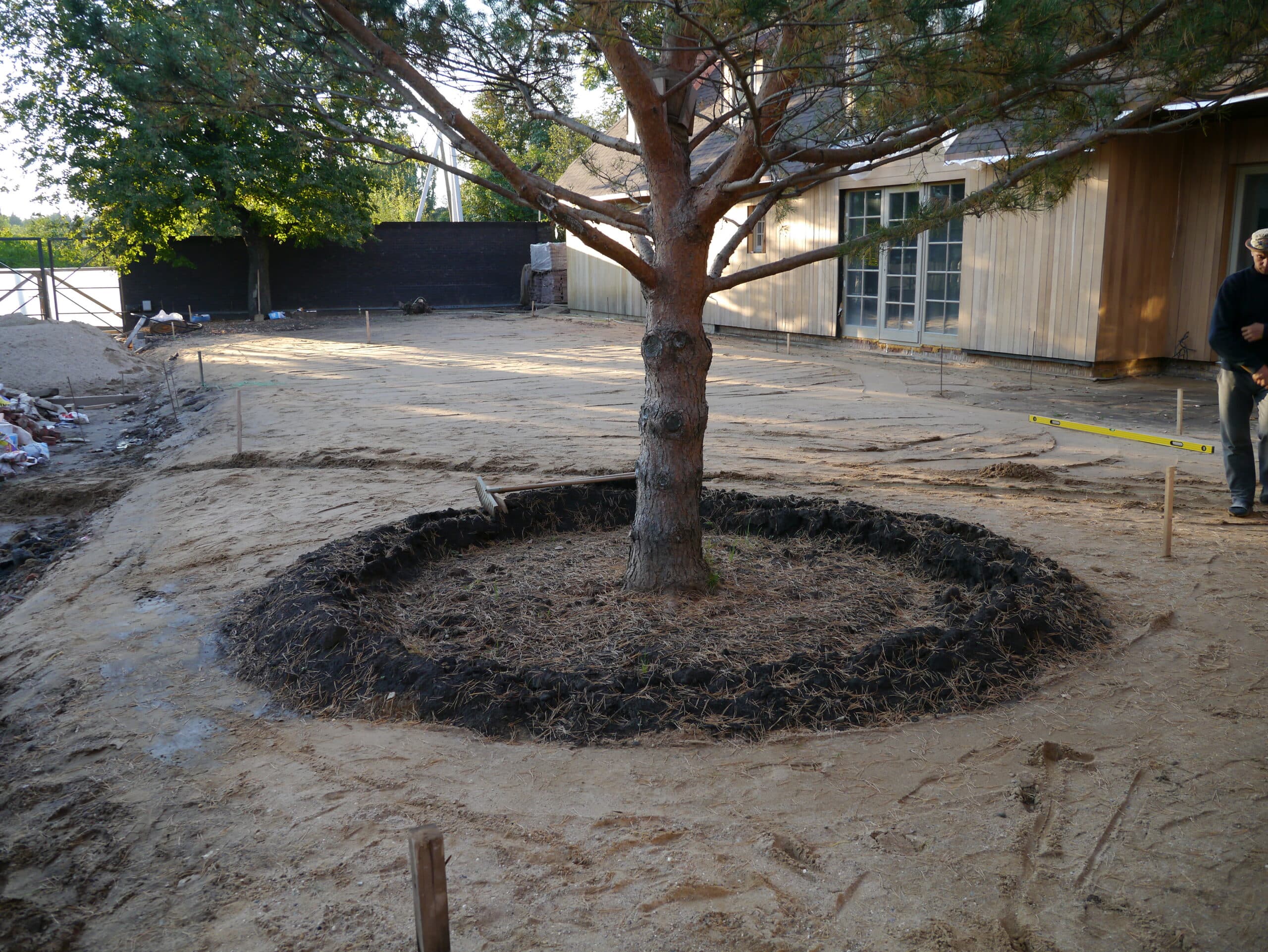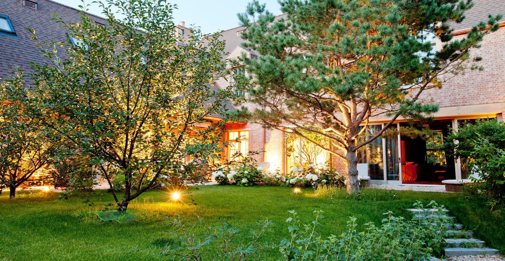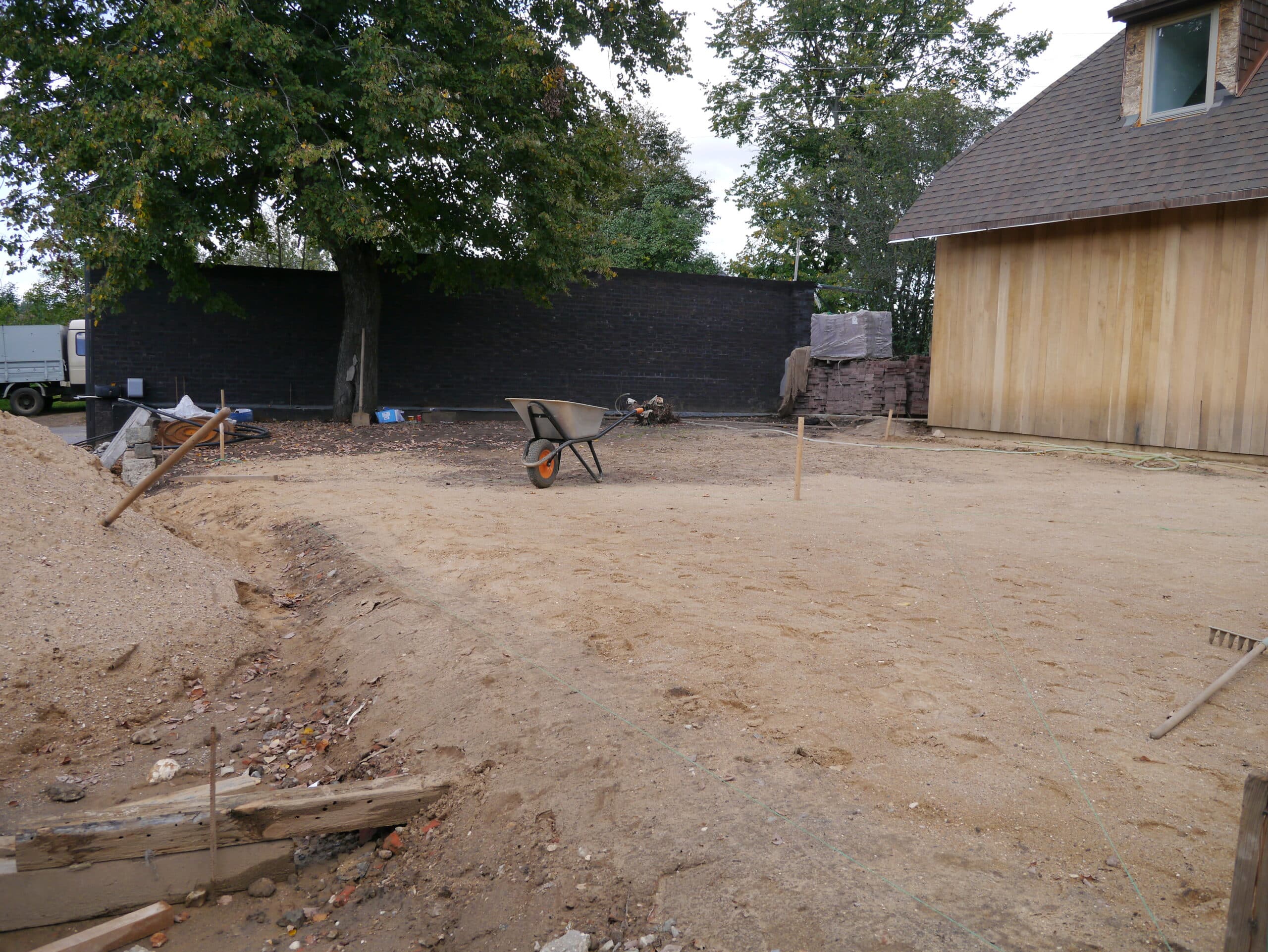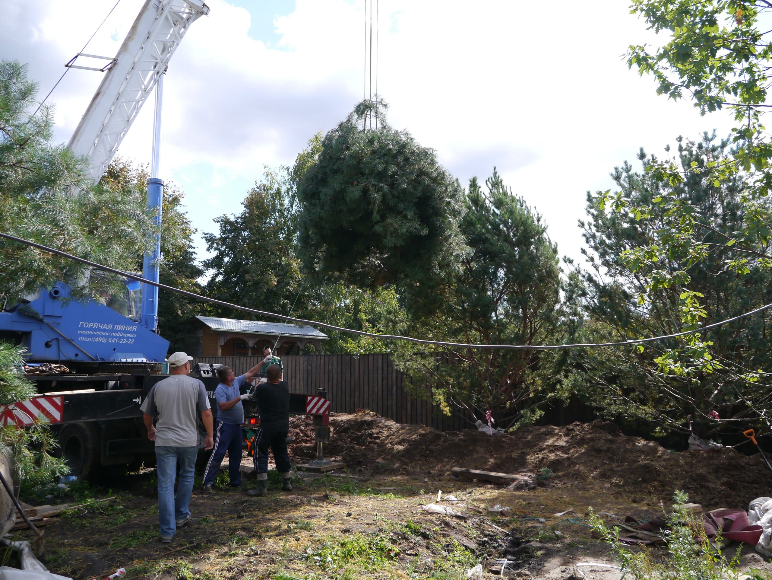 Работы по частичному обновлению грунта, прокладка дренажной системы, установка системы автоматического полива, создание дорожно-тропиночной системы – гравийные дорожки, посадка крупномерных деревьев, кустарников, цветников, укладка рулонного газона, установка освещения.
