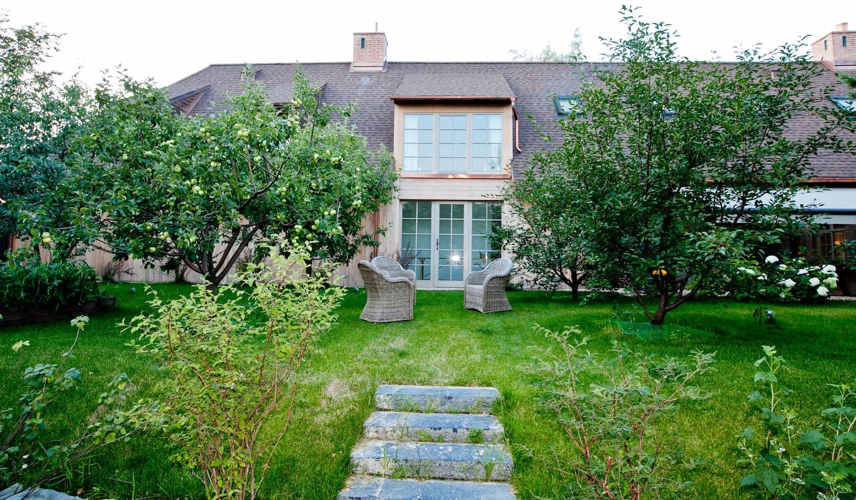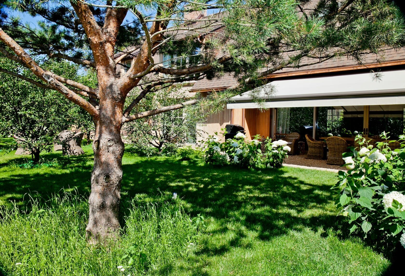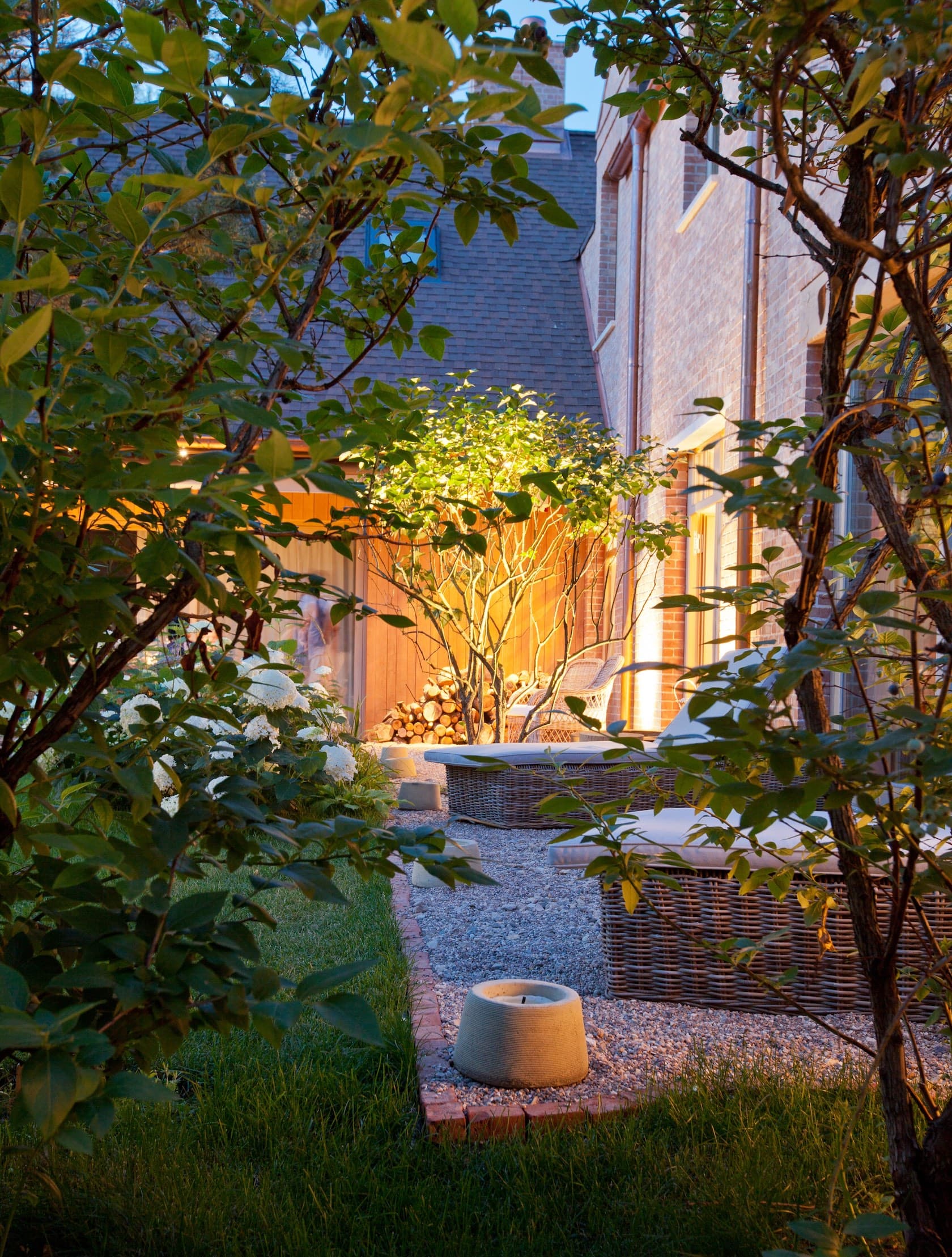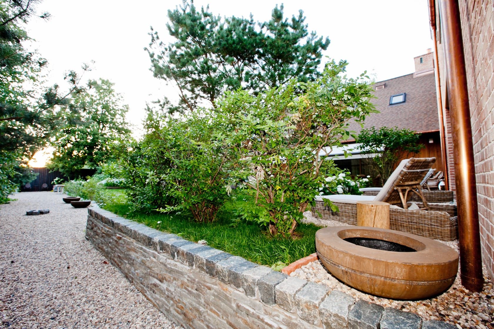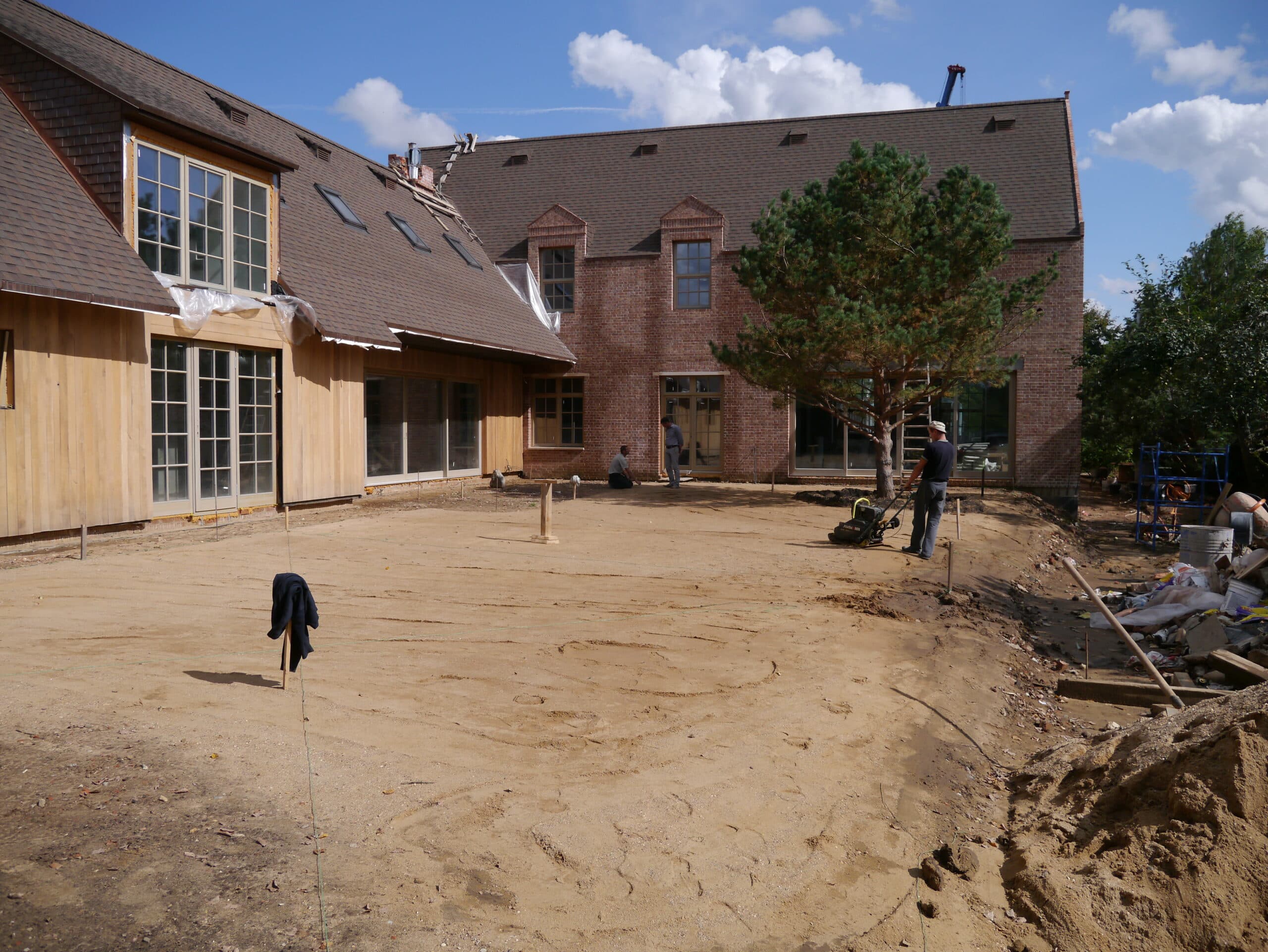 Работы по частичному обновлению грунта, прокладка дренажной системы, установка системы автоматического полива, создание дорожно-тропиночной системы – гравийные дорожки, посадка крупномерных деревьев, кустарников, цветников, укладка рулонного газона, установка освещения.