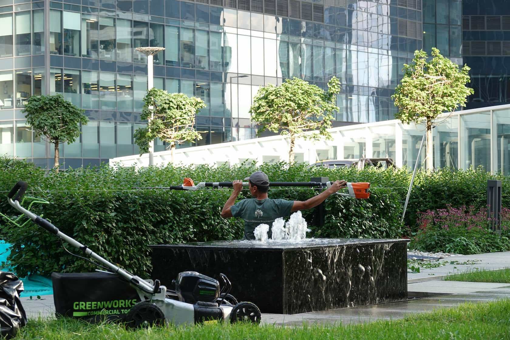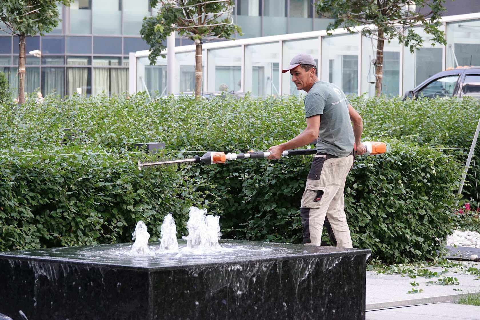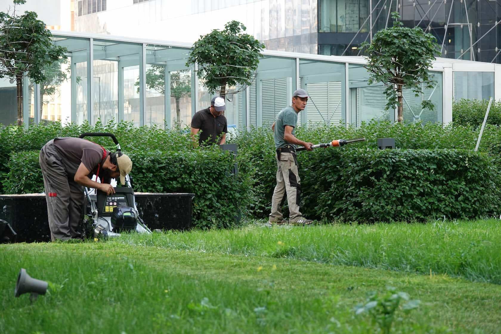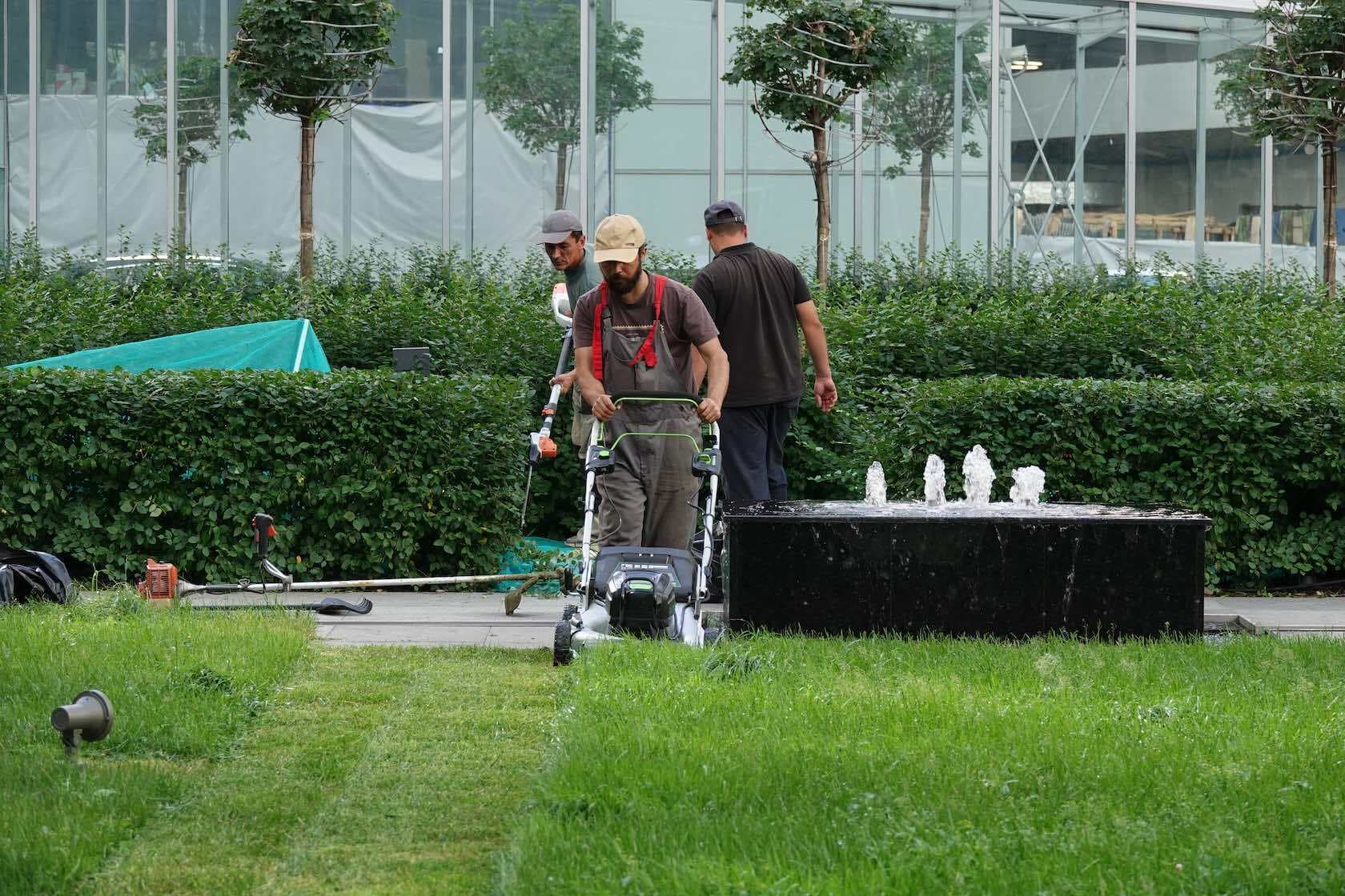 Нам поступило предложение взять на уход зеленую территорию вокруг этих небоскребов Москва Сити! Основной запрос был на содержание газона и решение проблем с посадками. Место открытое, очень сильно подвергается ветру, лето было жаркое и растения горели, хотя полив техническая служба обеспечивала по нормам. В городских посадках очень много нюансов. Мы буквально гонялись за каждым листиком. Ведь в центре Столицы все должно быть идеально!