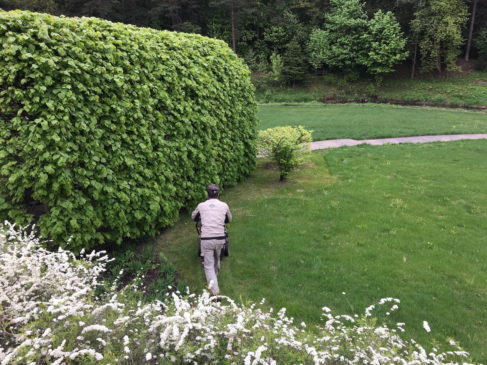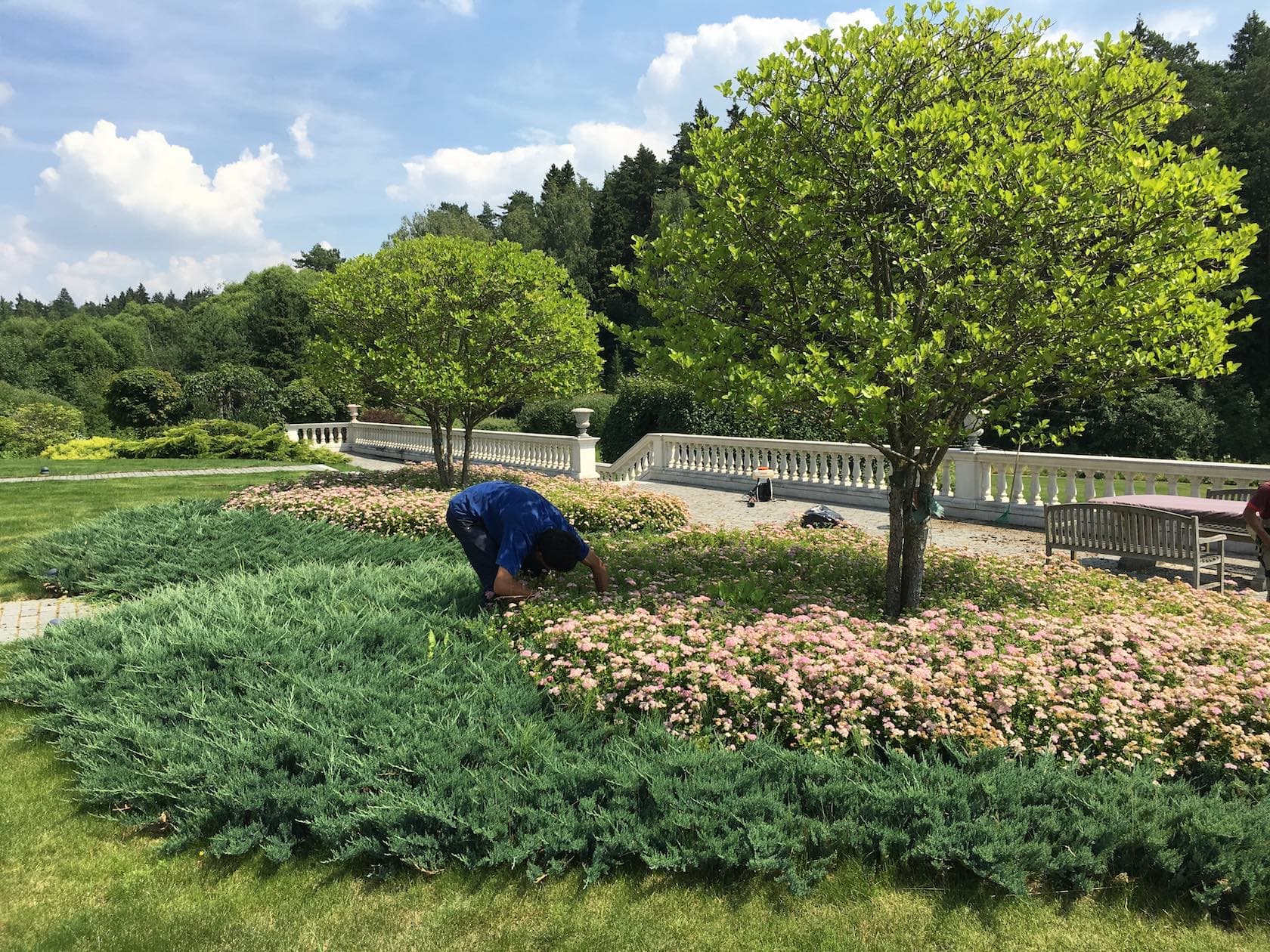 Стильная усадьба с великолепным ландшафтным дизайном, который создал Владимир Колесник появилась у нас в работе в начале 2016 года. Ухаживать за таким садом одно удовольствие: прекрасные площадки с газоном, посадки кустарников массивами, кроны деревьев, поддающиеся любой формовке. Наша команда с достоинством вывела сад из запустения, т.к. за ним не ухаживали несколько лет. Мы восстановили газон грамотной заботой, теперь он прекрасного зеленого цвета с шикарной дерниной. Вылечили деревья, сформировали правильные кроны, провели частичную вырубку. Много времени было отведено обустройству прибрежной зоны вдоль берега реки. А так же работа с цветниками, дорожками, борьба с сорняками и вредителями. Ни одно растение или дерево не осталось без нашего внимания! Сейчас все радует глаз, а мы продолжаем заботиться о саде и в очередной раз экспериментируем с Заказчиком какой формы подстричь посадки с ивами в этот раз!